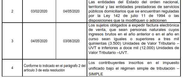 c. El artículo 3 establece los pasos que los facturadores electrónicos deben realizar en el portal de la Dian para obtener su habilitación como facturadores electrónicos y para solicitar la autorización de numeración de facturación y obtener la respectiva “clave de contenido de control”, a través de la cual se podrá luego generar el respectivo Cufe dentro del cuerpo de cada factura electrónica. El parágrafo 3 de ese mismo artículo indica que los obligados a facturar electrónicamente, señalados con la Resolución 000020 de marzo 26 de 2019, a excepción de aquellos que se inscribirán durante el 2019 en el régimen simple, podrán contar dos meses adicionales a la fecha máxima para empezar a expedir factura electrónica.