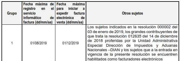 Por tal motivo, el 3 de enero de 2019 la Dian expidió la Resolución 000001, indicando las características básicas que tendría la factura electrónica de venta con validación previa. Posteriormente, dicha entidad expidió la Resolución 000020 de marzo 26 de 2019, señalando a nuevos contribuyentes que quedarían obligados a expedir ese tipo de facturación, algunos de los cuales debían haber culminado, en mayo 1 de 2019, su proceso de registro en el servicio informático electrónico de la Dian, solicitando su habilitación como facturadores electrónicos con validación previa para luego, a partir de agosto 1 de 2019, empezar a expedir dicho tipo de facturación.