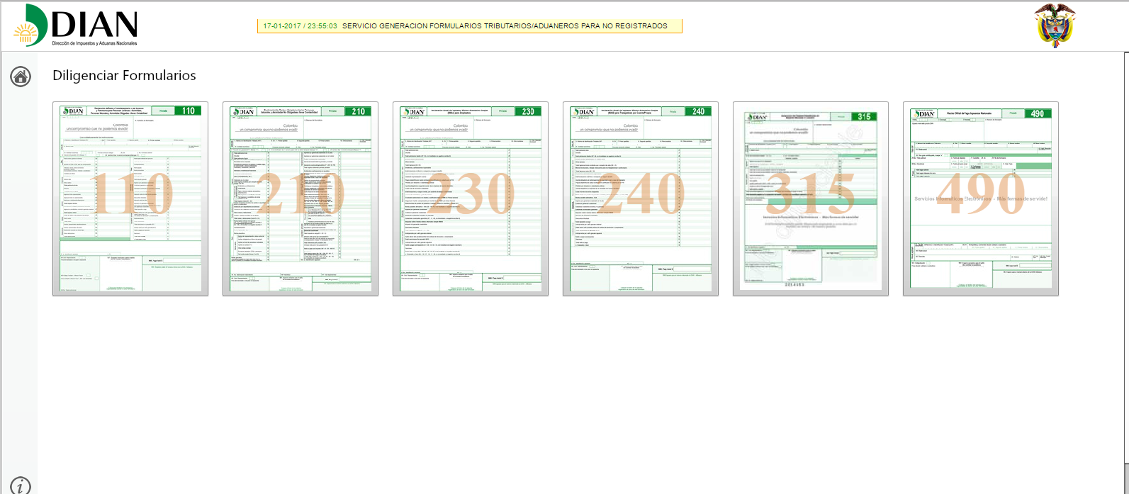 Formularios DIAN para usuarios no registrados que deseen diligenciarlos en el portal y presentar en banco