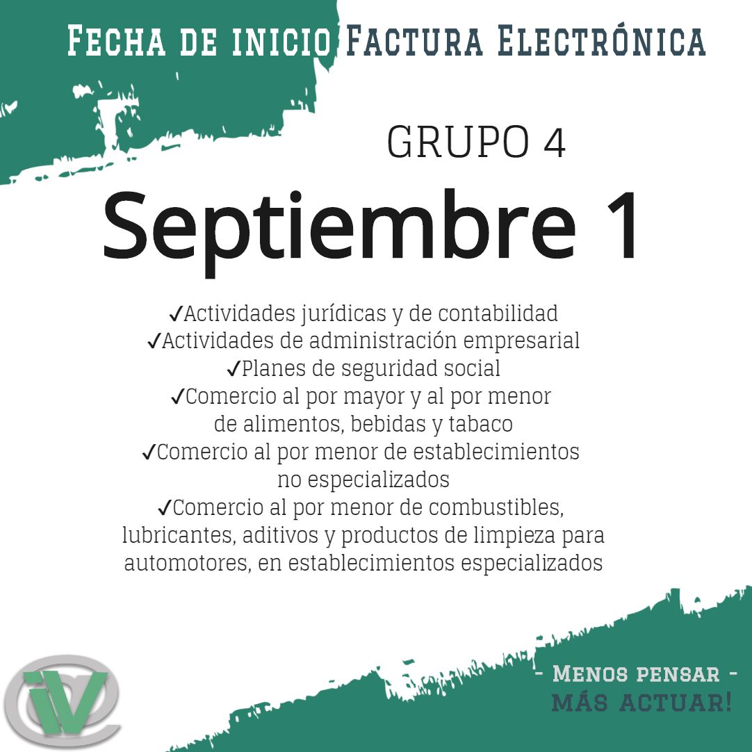 ✔️Para el Grupo 4 la Fecha Máxima para Comenzar a Facturar Electrónicamente es el primero de septiembre de 2020