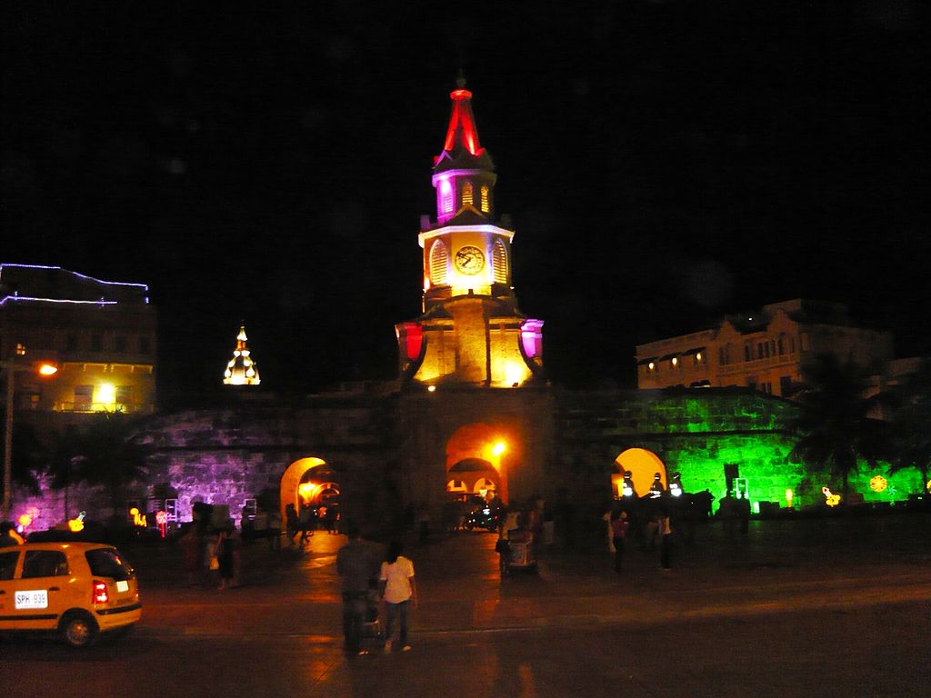 Siglo XX y desarrollo resultan sinónimos en la historia de Cartagena. Al despuntar la nueva centuria la ciudad registró una fase de transformaciones profundas en lo económico, social, político y cultural. El desarrollo industrial y la consolidación de una elite empresarial, representada por comerciantes, banqueros e industriales asociada a la migración extranjera, jalonaron esta transformación que se plasmó en lo urbanístico, el arte, la literatura, las costumbres y la identidad cultural de los cartageneros. Cartagena no fue tocada por las guerras civiles que estremecieron a Colombia. La paz y la apertura del ferrocarril que unió a la ciudad con el puerto de Calamar sobre el río Magdalena, permitieron que la bahía recuperara su papel estratégico como puerto comercial sobre el mar Caribe. Algunas familias habían logrado consolidar capitales en torno de las actividades de comercio exterior y fabricación de bienes de consumo y se hacían los primeros ensayos de industrialización. En 1891 se contaba ya con una planta eléctrica, en 1904 con acueducto y a partir de 1905 se inició una transformación planificada de la ciudad. La Torre del Reloj se construyó sobre la que en un principio fue la única puerta de Cartagena. Fue edificada por el arquitecto Luis Felipe Jaspe Franco26 por encargo del cabildo en 1876. Aquella puerta estuvo provista de puente levadizo, que se alzaba sobre el caño San Anastasio. Este iba desde la Bahía de las Animas hasta el llamado lago del Cabrero o de Santa Catalina, a través de lo que es hoy la urbanización de La Matuna.
