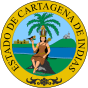 El actual escudo de Cartagena de Indias se adoptó cuando la ciudad había declarado su independencia de España y se había convertido en un Estado Soberano en 1811. En dicho escudo se aprecia una india sentada bajo la sombra de un cocotero, con su carcaj a la espalda, sosteniendo en su mano derecha una granada abierta de la cual se alimenta un turpial, con su mano izquierda sostiene un arco, y con su pie izquierdo pisa una cadena rota. Al fondo sobresale el cerro de la Popa, accidente geográfico más alto de la ciudad. El escudo representa la independencia y libertad que cobró la ciudad al ser la primera del Virreinato de la Nueva Granada. Actualmente es el escudo que posee la ciudad y ha sufrido varios cambios entre los cuales se destacan la inclusión de la fortaleza de San Felipe de Barajas al fondo, ícono arquitectónico construido durante la colonia.