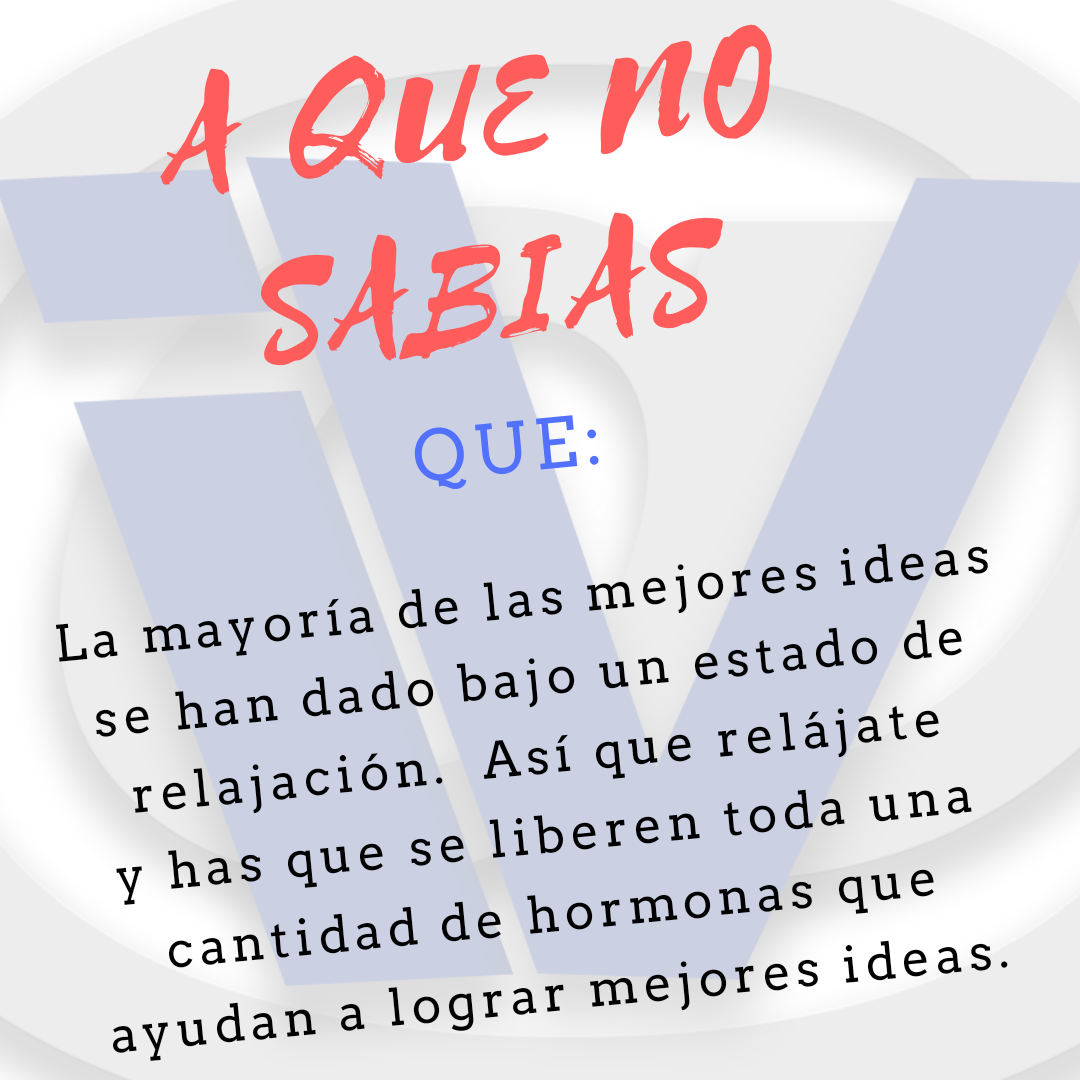 La mayoría de las mejores ideas se han dado bajo un estado de relajación. Así que relájate y has que se liberen toda una cantidad de hormonas que ayudan a lograr mejores ideas.