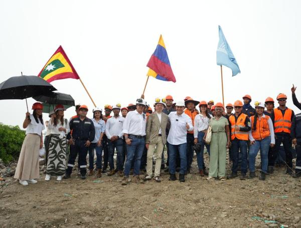 Personal encargado de los trabajos de demolición celebraron el hecho con banderas de Colombia, de la ciudad y de la Unesco.